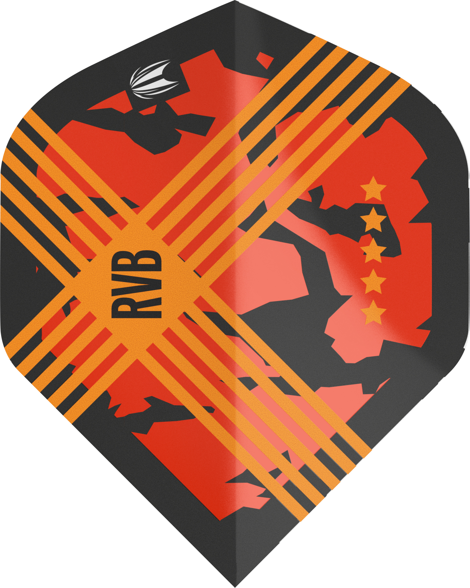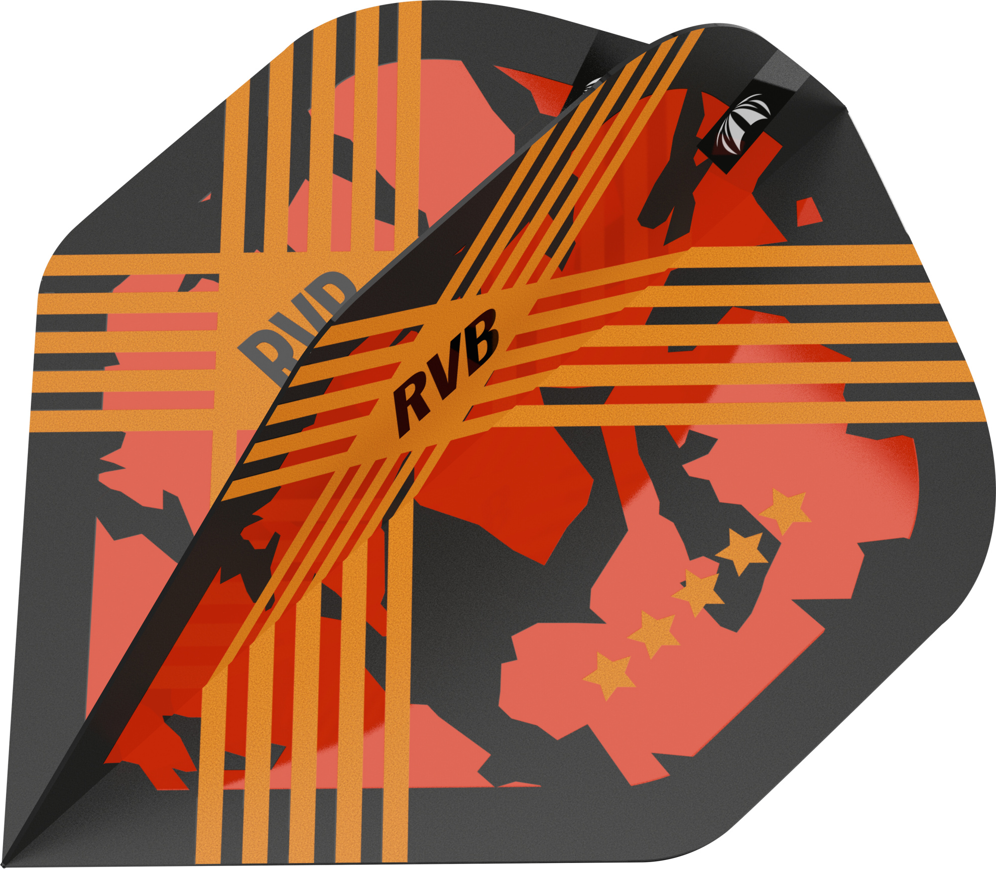 This vivid design is found in the RVB Generation 3 dart and features RVB’s trademark camo print overlaid with vibrant orange & black colour.